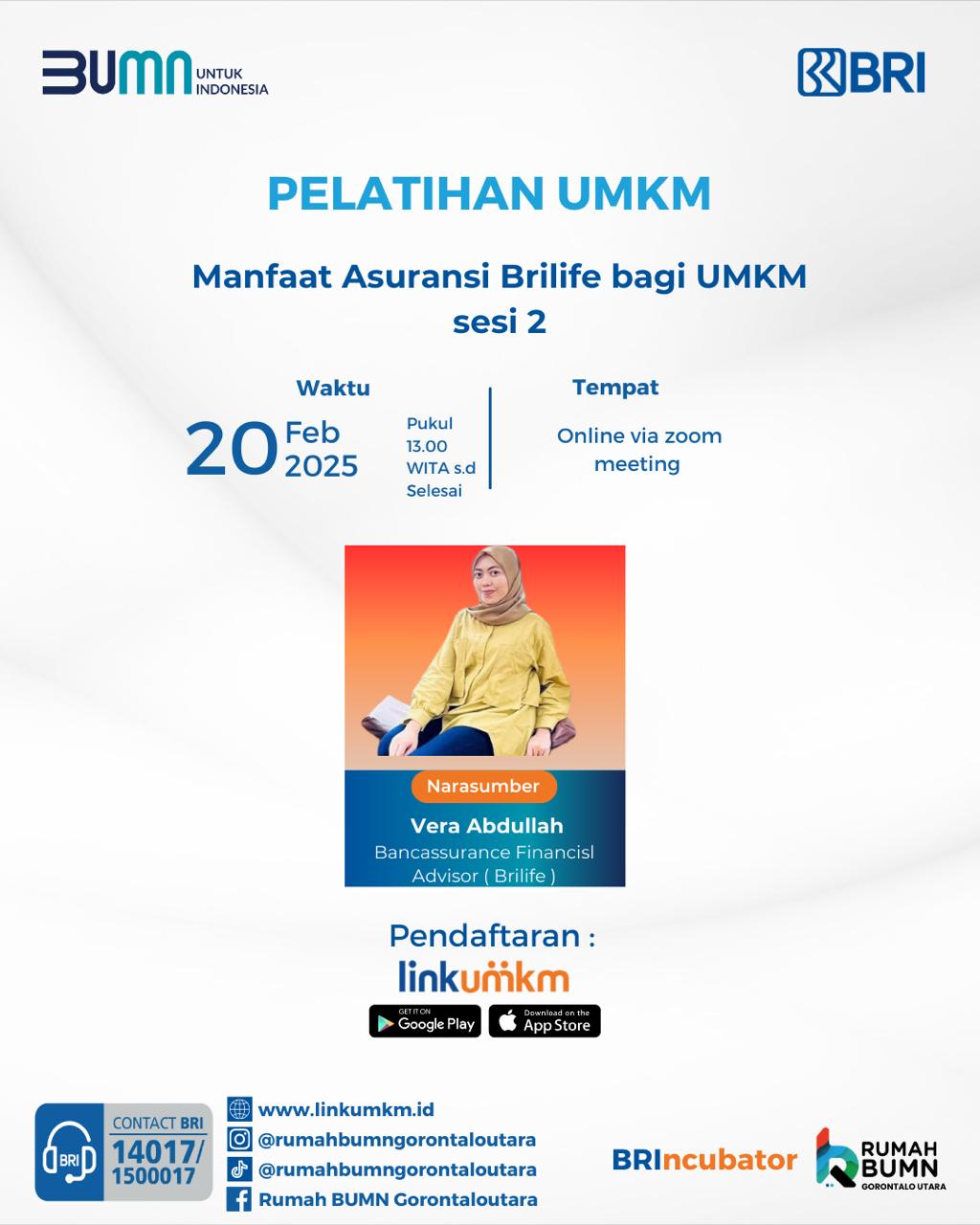 Judul Pelatihan : Manfaat Asuransi BRIlife Bagi UMKM Sesi 2