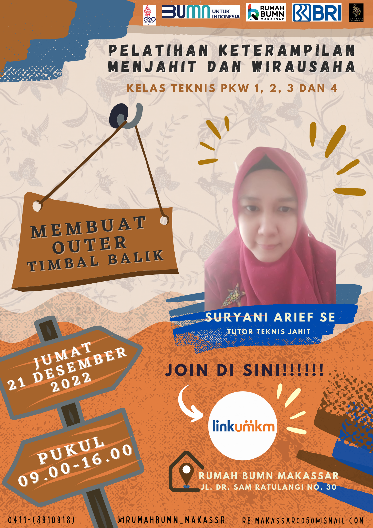 Ruham BUMN Makassar berkolaborasi dengan komunitas maker dan mikrometer chaprter makassar akan melangsungkan kegiatan pelatihan dengan tema "materi outer bolak balik pkw 01 02 03 04". diharapkan output pelatihan ini akan meningkatkan skill/keterampilan agar dapat membantu meningkatkan kesejahteraan rumah tangga