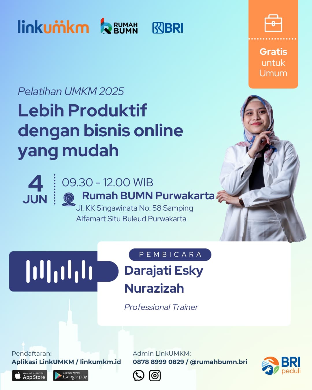Sobat UMKM, Rumah BUMN Purwakarta mengadakan Pelatihan Secara Offline.