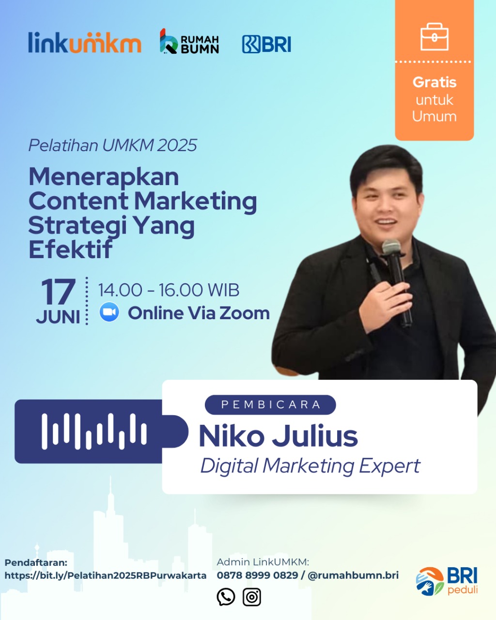 Sobat UMKM, Rumah BUMN Purwakarta mengadakan Pelatihan Secara Online.
