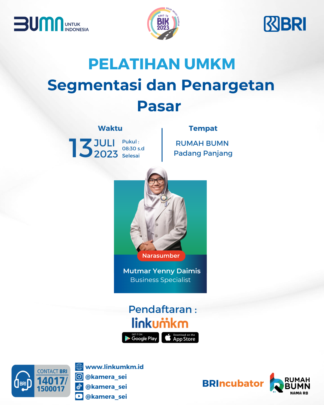 Rumah BUMN Padang Panjang mengadakan PPelatihan Segmentasi dan Penargetan Pasar. Menghadirkan pakar dibidangnya demi kemajuan UMKM Indonesia.