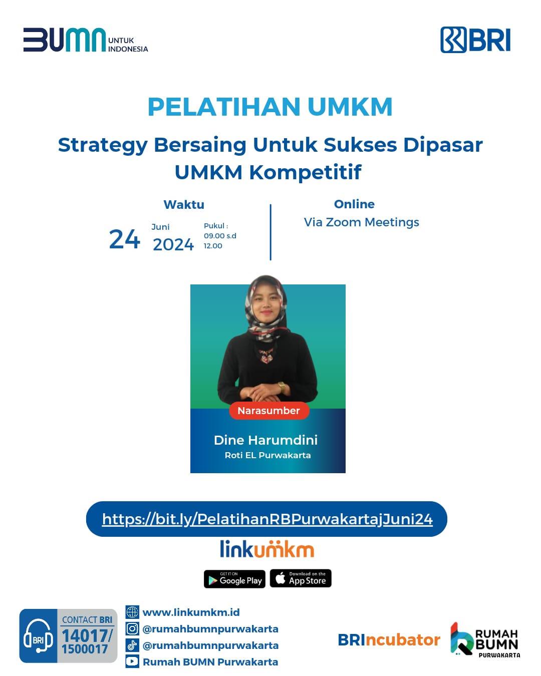 Sobat UMKM, Rumah BUMN Purwakarta mengadakan Pelatihan Secara Online.