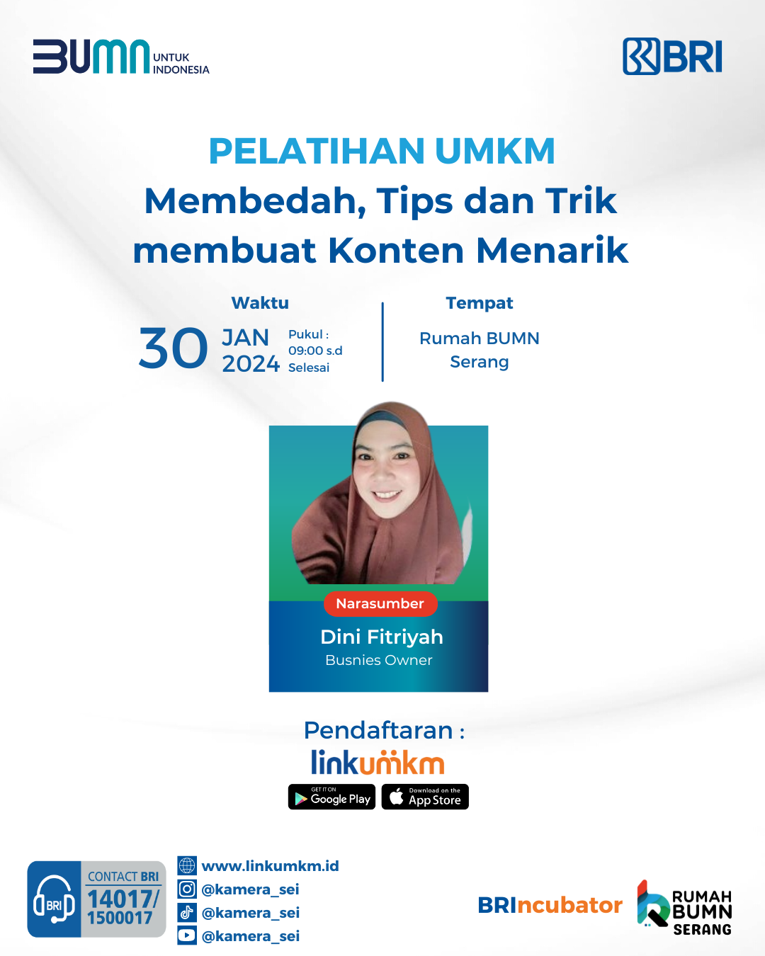Platform Linkumkm (selanjutnya disebut “Platform”) adalah suatu situs jejaring sosial yang digunakan secara online atau menggunakan akses internet yang dibuat dengan tujuan agar membawa UMKM Indonesia naik kelas melalui rangkaian program pemberdayaan terpadu. LinkUMKM merupakan platform yang diselenggarakan oleh BRI Research Institute (BRIRINS) yang bekerjasama dengan PT Bank Rakyat Indonesia (Persero) Tbk. (selanjutnya disebut “Kami”) untuk mendukung pengembangan UMKM.