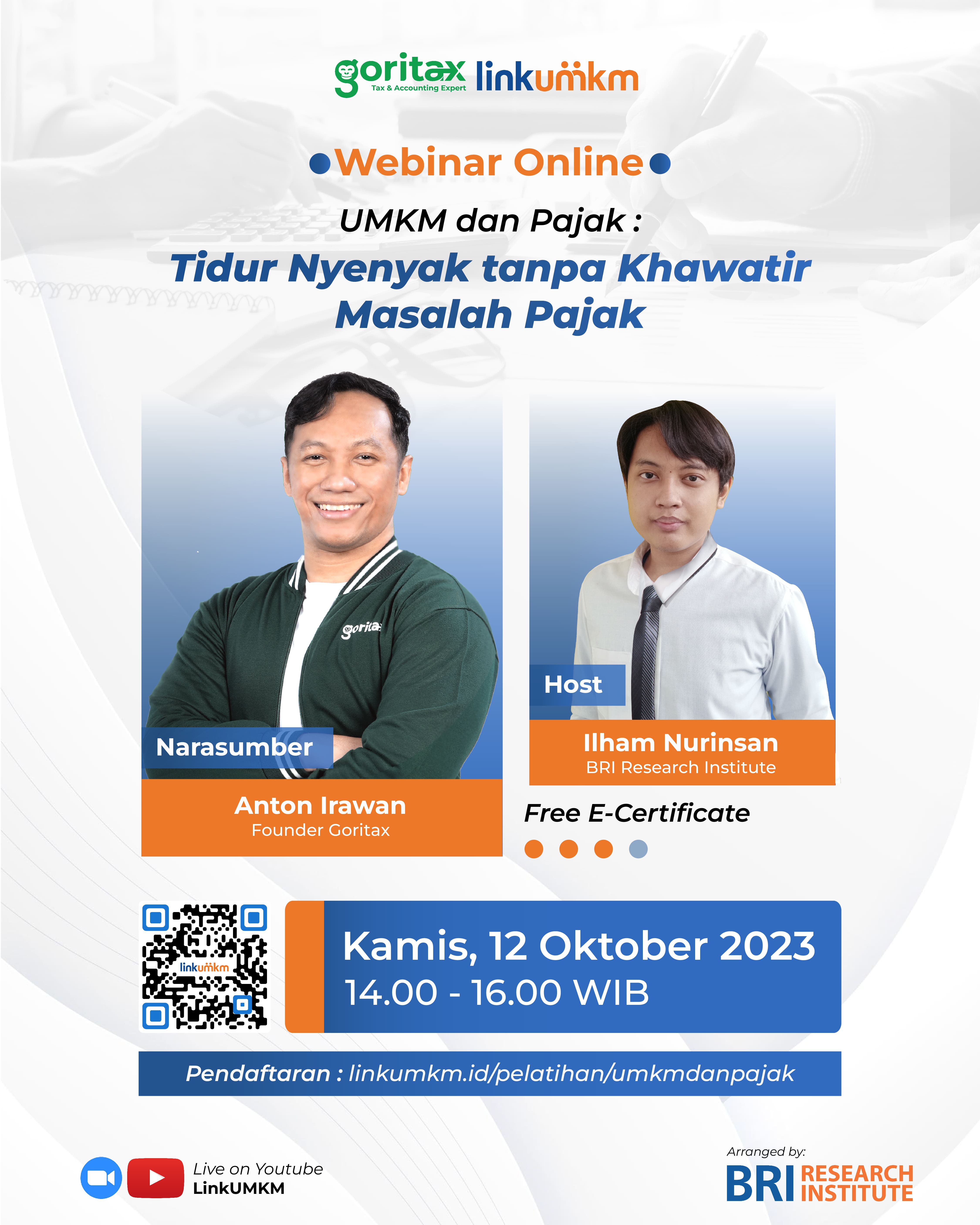 Link Pendaftaran : linkumkm.id/pelatihan/umkmdanpajak