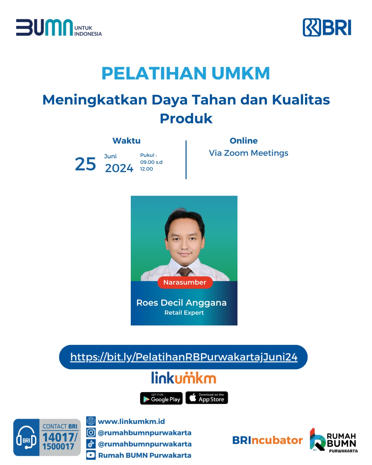 Sobat UMKM, Rumah BUMN Purwakarta mengadakan Pelatihan Secara Online.