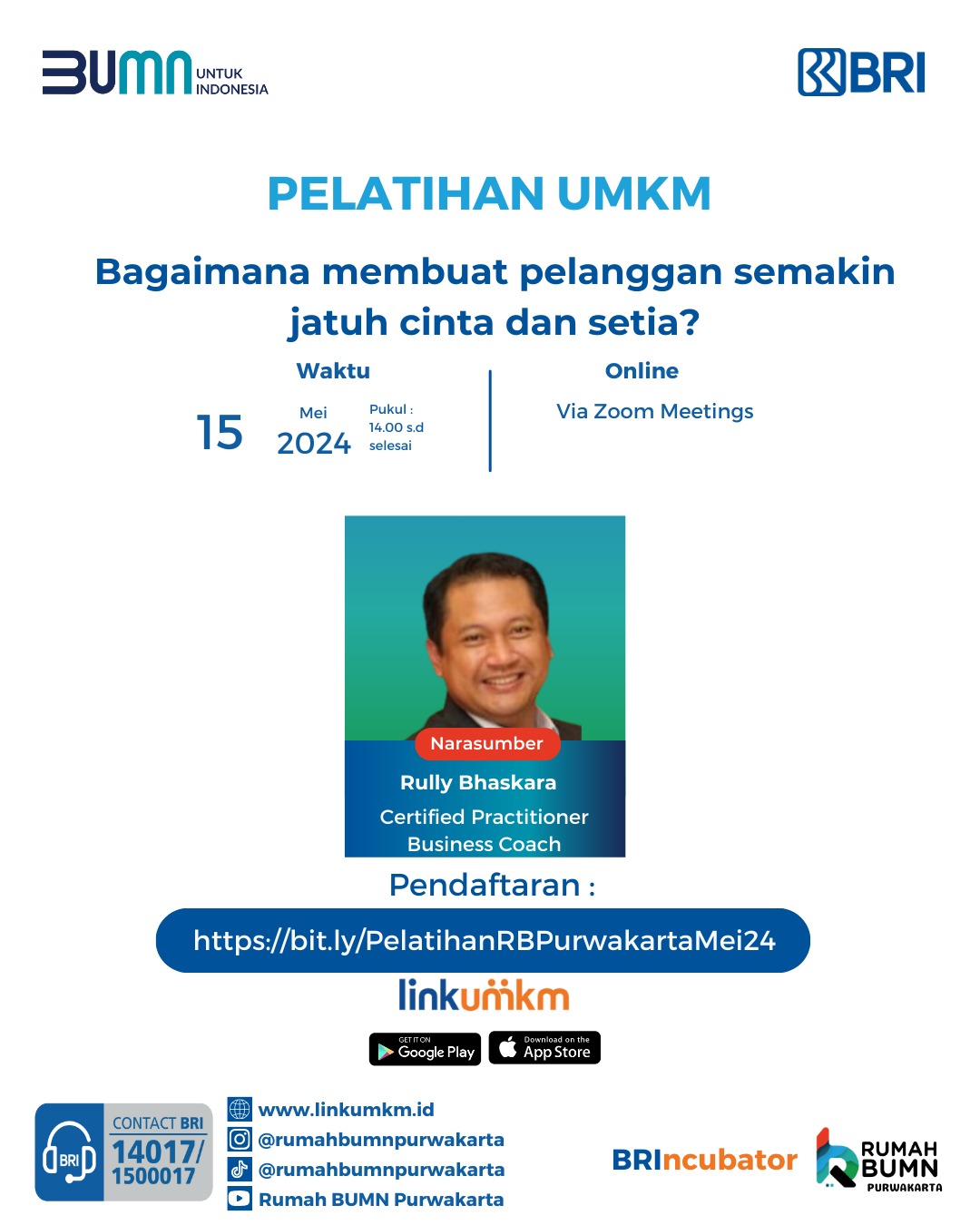 Sobat UMKM, Rumah BUMN Purwakarta mengadakan Pelatihan Secara Online.