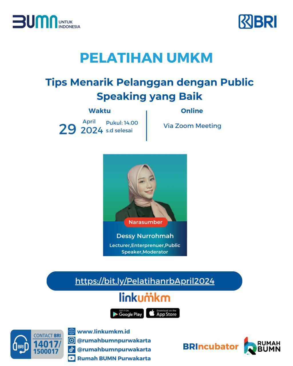 Sobat UMKM, Rumah BUMN Purwakarta mengadakan Pelatihan Secara Online.