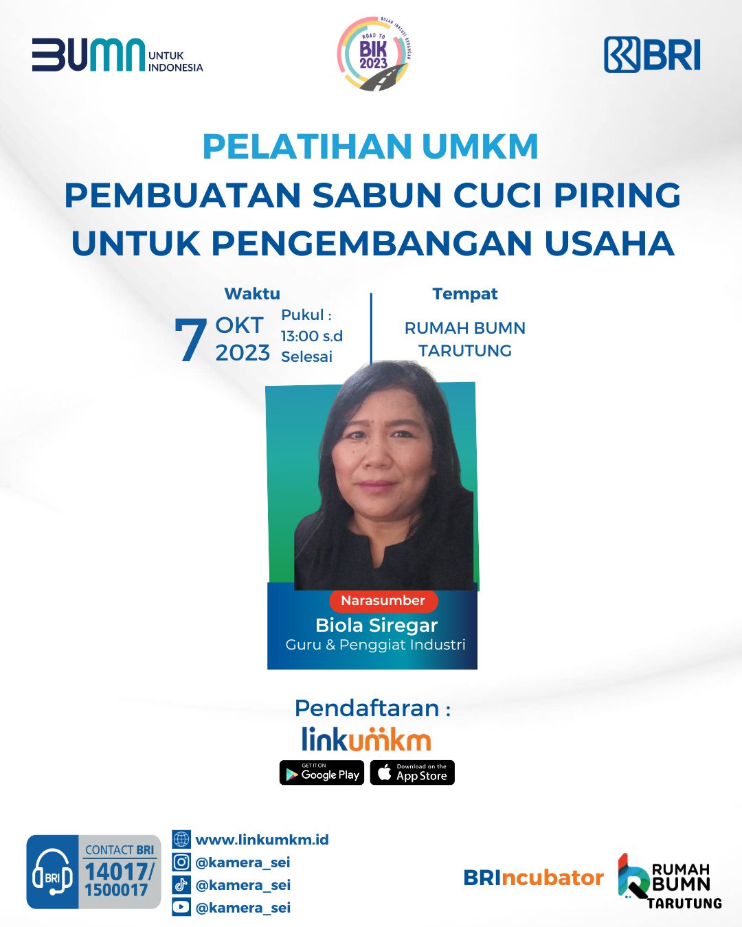 Rumah BUMN Tarutung akan mengadakan pelatihan mengenai "Cara Pembuatan Sabun Cuci Piring" pada Hari Sabtu Tanggal 07 Oktober 2023 jam 13:00 s/d selesai.